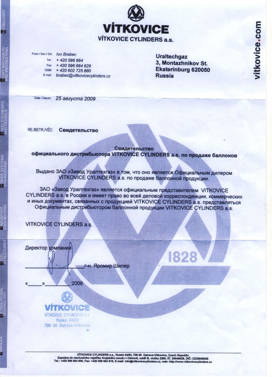 Баллоны Vitcovice Сylinders a.s. 40л. 50л. 80л. 100л.