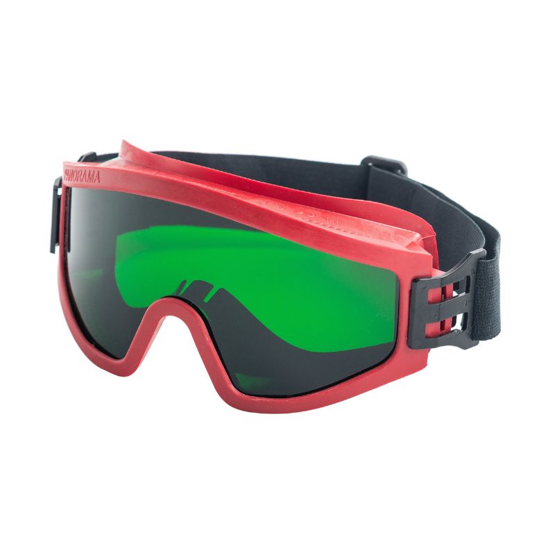 Очки с непрямой вентиляцией с панорамным защитным стеклом-светофильтром зелёного цвета из ацетата целлюлозы (СА), устойчивым к царапанью и истиранию, обладающим самополирующимся эффектом, антистатичностью. Мягкий корпус из эластичного материала Evoprene. Широкая регулируемая наголовная лента.