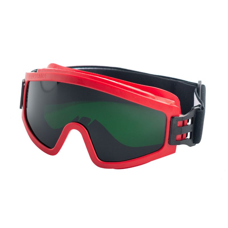 Очки с непрямой вентиляцией с панорамным защитным стеклом-светофильтром тёмно-зелёного цвета из ацетата целлюлозы (СА), устойчивым к царапанью и истиранию, обладающим самополирующимся эффектом, антистатичностью. Мягкий корпус из эластичного материала Evoprene. Широкая регулируемая наголовная лента.